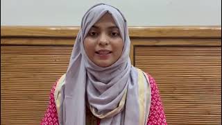 میں نے اردو مباحثوں اور ادبی مقابلوں میں بہت سے مقابلے جیتے ہیں۔ہوں▶️ میں موضوع کو سیکھنے میں آسانی پیداکرتی ہوں۔